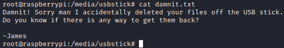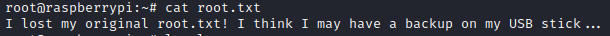 Inside root.txt, I found message stating that backup file should be on USB stick.