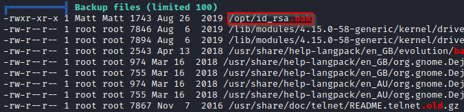 Another interesting file, owned by user Matt, is located in the /opt directory. It looks like it could be backup of Matt’s private key.