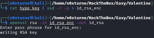 Nmap revealed that server is vulnerable to Heartbleed. By exploiting this, I was able to retrieve memory leak which contained base64 encoded string that decodes to heartbleedbelievethehype. By brute-forcing directories on port 80, I discovered the /dev/ directory, which contained hype_key file. After inspecting contents of hype_key, I was able to determine that it is hex encoded. I used xxd for decoding. Decoded file proved to be encrypted rsa key. After decrypting file with openssl, I was able to ssh into the system as user hype. Enumerating system with linpeas.sh revealed that root is running /usr/bin/tmux -S /.devs/dev_sess command. To get access to this tmux session we can replicate the same command.