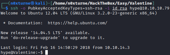 ssh -o PubkeyAcceptedKeyTypes=ssh-rsa -i id_rsa hype@10.10.10.79